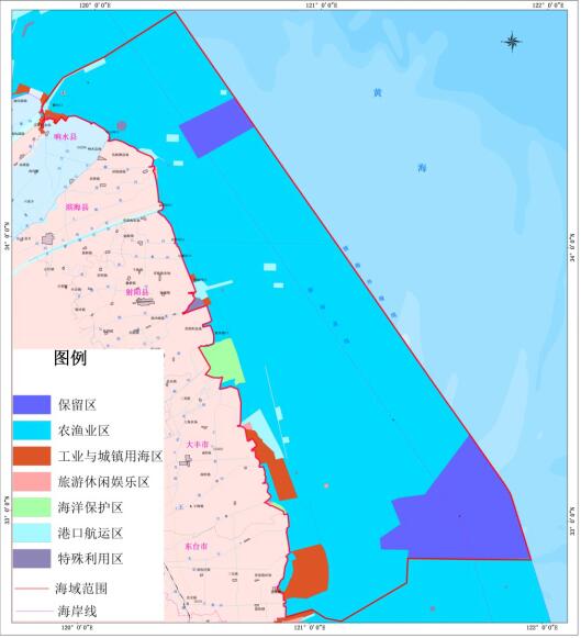 辐射沙洲海域。位于射阳河口到老坝港以东,重点依托盐城湿地珍禽国家级自然保护区、大丰麋鹿国家级自然保护区和区域内辐射沙脊群海域滩涂形成的土地后备资源,形成农渔业、港口航运、工业和城镇、矿产和能源、旅游休闲娱乐、海洋自然保护等基本功能。该区域海岸淤涨最为明显,岸滩宽阔,沙洲面积巨大,生态系统复杂多样,生态保护区面积较大。海洋开发应严格遵循海洋功能区划,不破坏现有海洋水动力环境总体格局,减少对周边水动力环境、岸滩和海底地形地貌的影响,避免工业和城镇、农业用海对毗邻海洋生态产生影响。