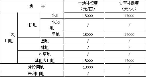 (一)根据《江苏省土地管理条例》、苏政发[2011]40号及盐政发[2006]27号等文件规定,此次征地的土地补偿费和安置补助费拟按下列标准执行: