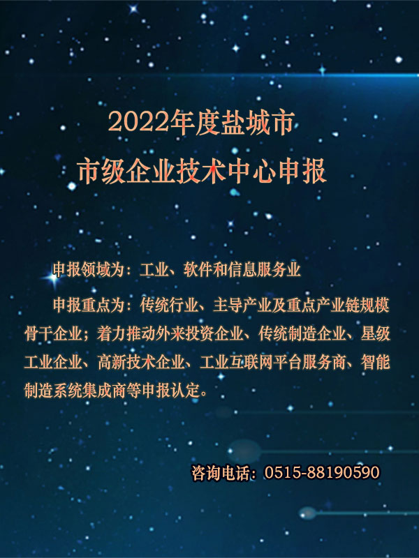 关于开展2022年度盐城市市级企业技术中心申报认定工作的通知