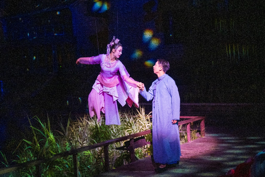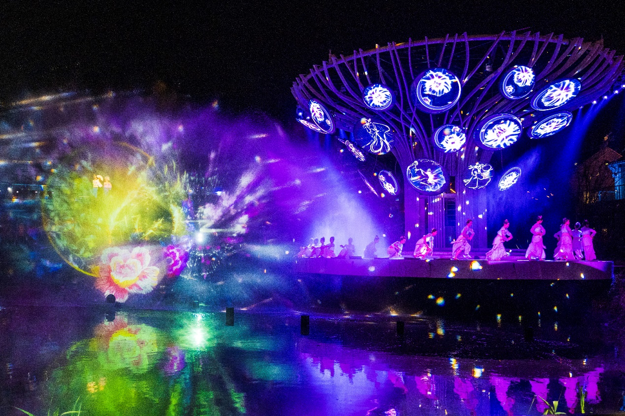 简介:以“喜”为核心的多维实景沉浸式秀演,采用“9+1”的格局,包括开门见喜、勤业至喜、繁花上喜、悲欢皆喜、天真之喜、修德生喜、春色如喜、烟火欢喜、见闻心喜九大新空间演艺和一场融合秀演《喜临天下》,每个场景都是一个淮剧绝活,一个精巧演艺,一个单元小戏。各个版块之间衔接巧妙,以灯光、表演、影音等载体进行串联,为游客、观众营造“人在画中游,画在景中走”的沉浸式文化体验氛围。