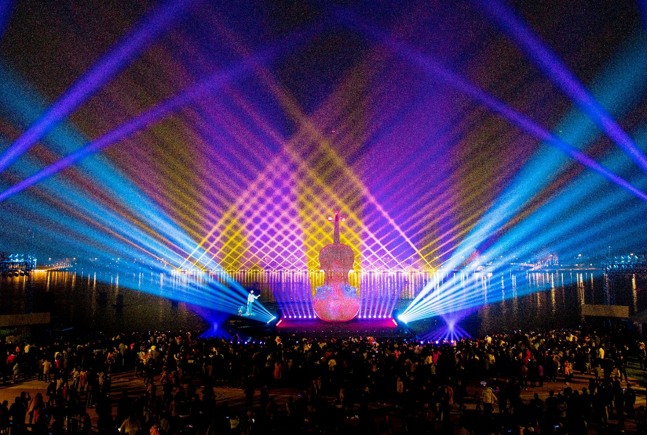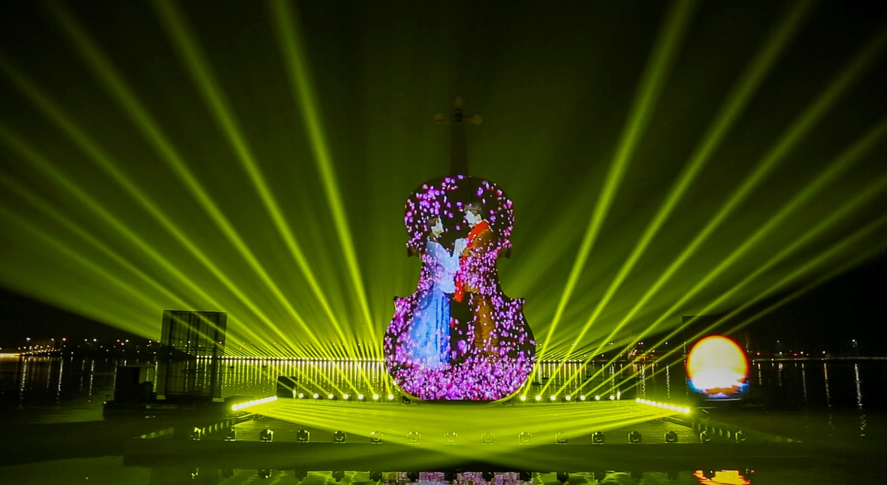 简介:《船说海棠》无人船光影秀以“文旅+科技”为核心,由82艘无人船组成的大型编队在夜色中水面自由移动,通过无人船、无人机和激光视频投影技术将景区、演员有机结合,共同呈现一场梦幻唯美的爱情音乐演绎盛宴。