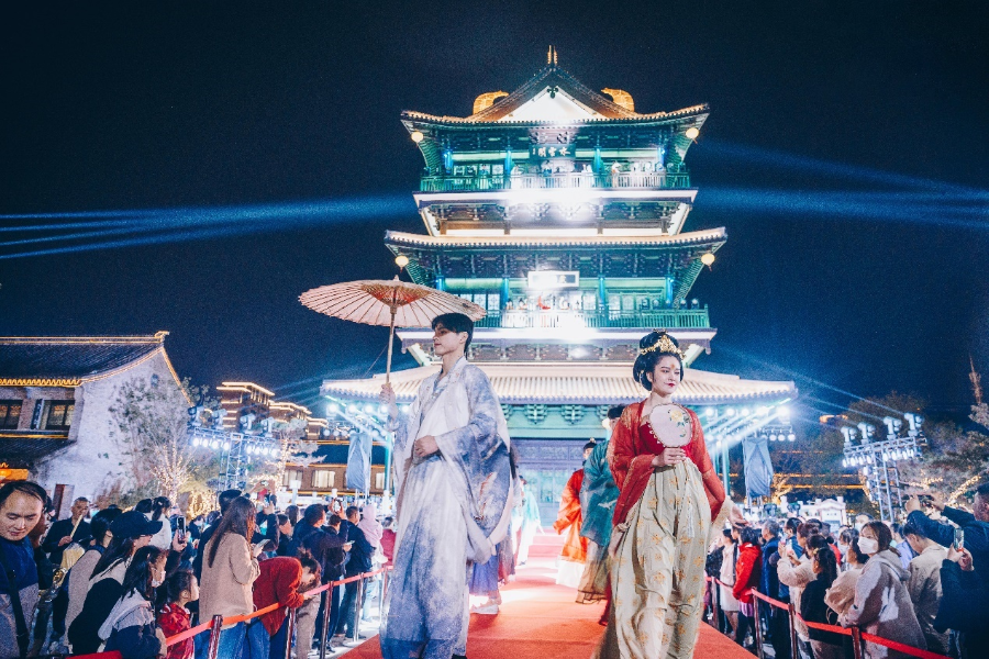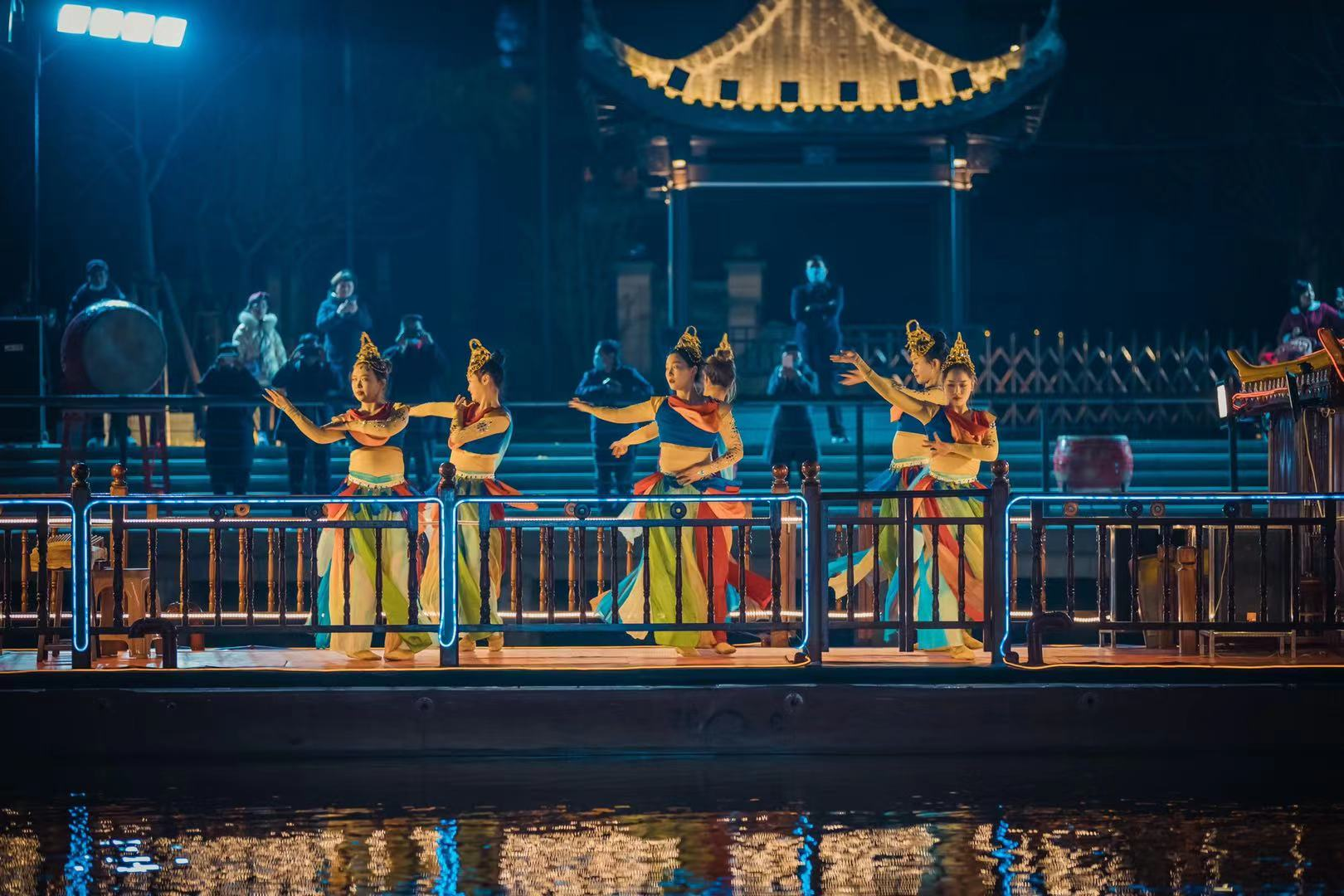 简介:串场河是盐城一条历史悠久的大河,已有1200多年的历史,孕育了深厚的盐文化,丰厚了沿线各地人文史话。一场以串场河之旅开启的行进式实景演出《串场夜画》,包含了淮剧《范公堤》经典唱段、情景表演《祭海》、古典舞蹈《水街印象》、轻乐队表演《我把盐城唱给你听》、情景舞蹈《鹤鹿同春》、双船表演《流动之境》等共10个演艺项目,充分展示串场河的景色之美、人文之美、风物之美。游客不论是乘坐游船还是漫步两岸,都能在欣赏沿途风光的同时领略串场文化,感受盐城梦幻之夜。