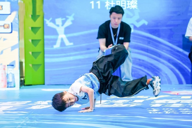 街舞比赛,小选手翻转腾挪。