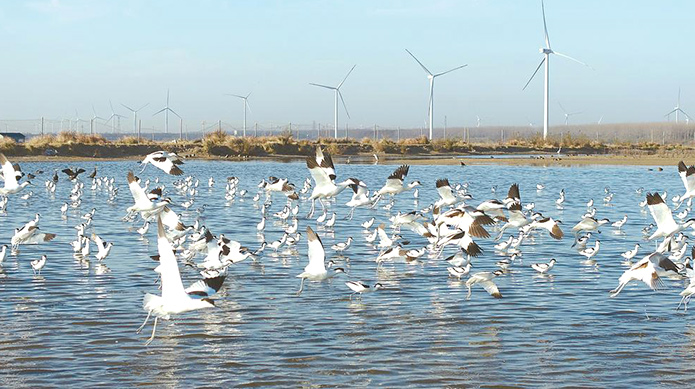 12月8日,初冬的晨光穿透薄雾,洒在东台条子泥湿地的滩涂上,成群的反嘴鹬在此停歇。条子泥是冬季候鸟迁徙途中重要的补给站,该区域涨潮为海、落潮为滩的特殊地貌,为鸟类提供丰富的食物资源和安全的栖息环境。从2024年首次发现丹顶鹤来此越冬,到2025年世界湿地日当天虎头海雕首次现身,越来越多的珍稀鸟类选择在这里停歇、越冬。《2024—2025年盐城市遗产地越冬鸟类调查报告》显示,设置的调查样地中共记录越冬鸟类126种、136123只,个体数量普通鸬鹚居第一,与豆雁、反嘴鹬、白骨顶、翘鼻麻鸭构成前五大优势种群,合计占总个体数量的68.2%。