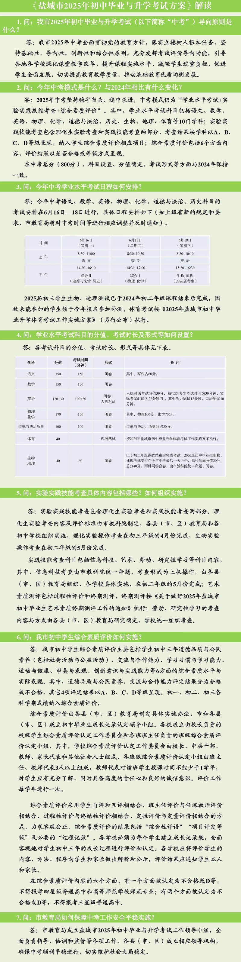 《盐城市2025年初中毕业与升学考试方案》解读