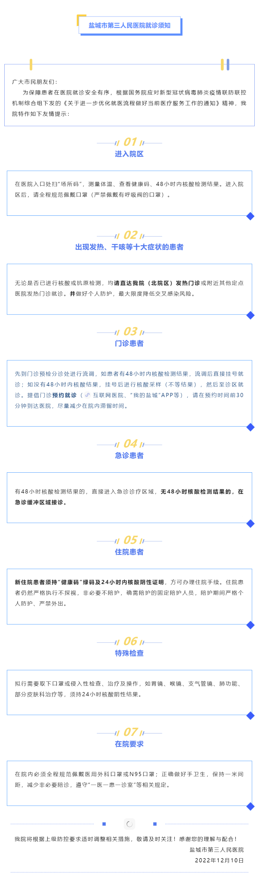 盐城市两家医院发布最新就诊须知,提供互联网服务
