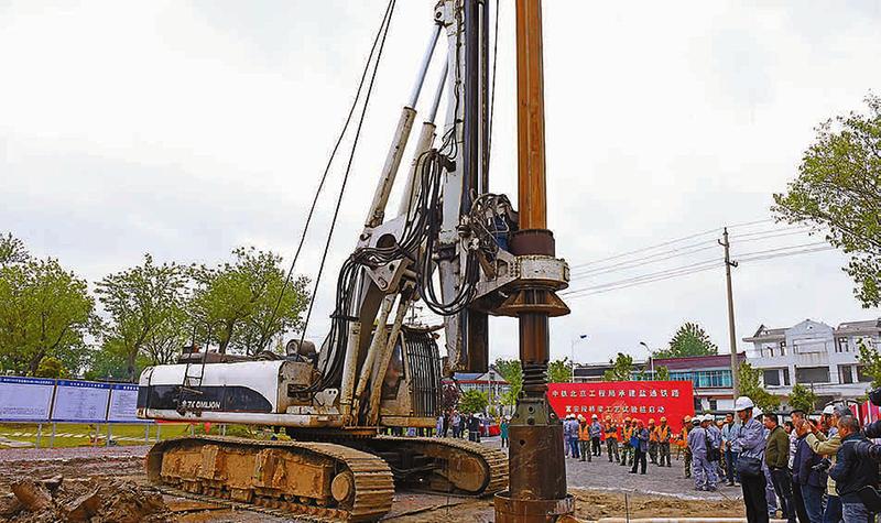 近日上午,在盐城市东台富安镇境内,盐通铁路四标中铁北京局施工现场,盐通铁路全线首根工艺试验桩开钻,标志着盐通铁路线下工程施工正式启动。