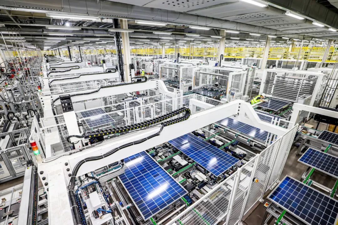 近日,在通威太阳能(组件)盐城基地项目M3车间,一台台自动化光伏组件设备整齐排列,工人们全力以赴在各自的岗位上有序忙碌。通威太阳能(组件)盐城基地项目是通威股份在江苏投资建设的第一个光伏组件项目,项目于1月份开工建设,5月底首批厂房M3投产使用,从开工到第一片产品下线,用时不到5个月,预计下半年可实现高效光伏组件产出不低于12GW。