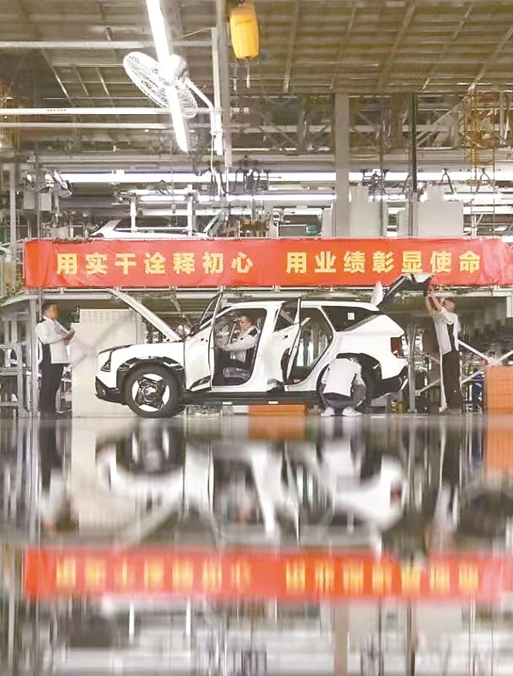 自品牌革新战略发布以来,悦达起亚坚定推进创新变革,全面开展电动化转型,加快推进出口基地建设,致力将盐城智造工厂打造成为起亚名副其实的全球生产及出口基地。10月12日,在悦达起亚生产车间,工人和机械臂紧张有序配合,新能源汽车EV5很快装配成功,再经过后道严格工序,第一时间送到消费者手中。凭借动感设计、优越性能,截至今年9月底,悦达起亚的新能源车型累计销售近万辆,在手订单充足。