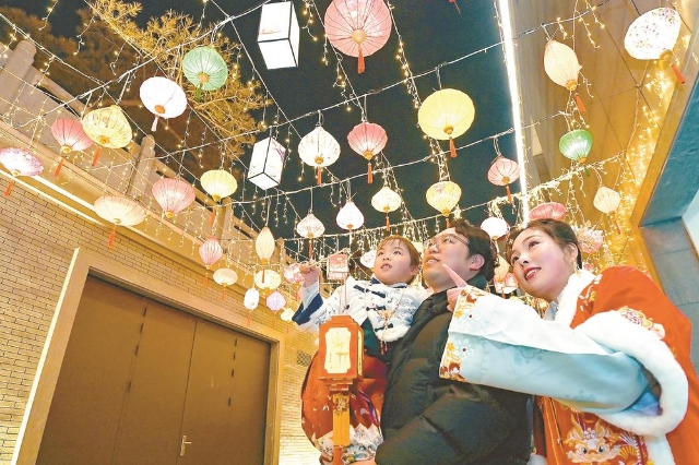 记者在现场看到,市民和游客秩序井然地穿行于景区灯光海洋中,或驻足赏灯,或合影留念,一同沉浸在灯火辉煌的世界里,享受闲适与欢乐,感受传统节日的独特魅力。