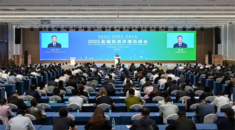周斌在致辞中对各位嘉宾的到来表示欢迎。他说,盐城是一本读不完的书,历史悠久、人文荟萃;盐城是一幅看不厌的画,水韵灵动、“湿”意盎然;盐城是一首吟不倦的诗,敢为人先、勇立潮头;盐城是一曲忘不掉的歌,清新悠扬、沁人心脾。今日之盐城,得天时、揽地利、聚人和,正充分发挥“6+1”比较优势,勇当发展新质生产力重要阵地“碳路先锋”。让我们相约在盐城,感受城市魅力、畅享品质生活、共谋合作发展,携手共绘新质蓝图、开放蓝图、绿色蓝图。我们将聚焦“极简、更优、赋能、精准”,持续深化政务服务增值化改革,为大家提供最优的服务、给予最大的支持,与大家共享发展机遇、共创美好未来。