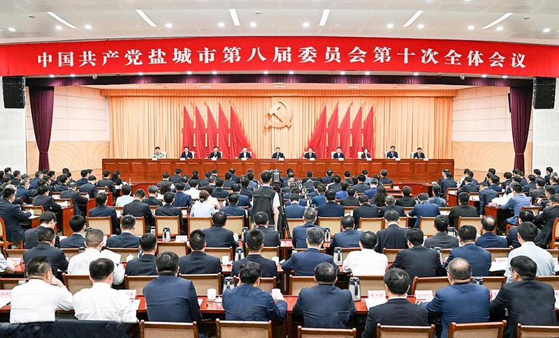 5月30日,中国共产党盐城市第八届委员会第十次全体会议召开。全会坚持以习近平新时代中国特色社会主义思想为指导,全面贯彻党的二十大和二十届二中、三中全会精神,按照省委十四届九次全会部署要求,对深入学习贯彻习近平总书记参加今年全国人代会江苏代表团审议时的重要讲话精神进行部署,动员全市上下牢记嘱托、感恩奋进,坚定扛好勇挑大梁政治责任,为全国全省发展大局多作贡献。