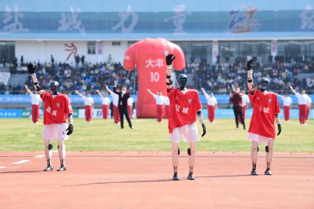 揭幕战由大丰区代表队对阵盐南高新区代表队。双方球员斗志昂扬、攻防有序,展现出良好的竞技状态。同一时段,另外7个赛区同步开赛,16支队伍悉数登场,开启首轮激烈角逐。当天,全市共2.6万名球迷入场观赛,在春日暖阳中共享足球运动的激情与欢乐。中场休息时,各场地还穿插进行机器人秀、民族歌舞等表演,科技元素与人文气息相得益彰,生动诠释“国际湿地、沿海绿城、江淮门户”的城市定位和多元魅力。
