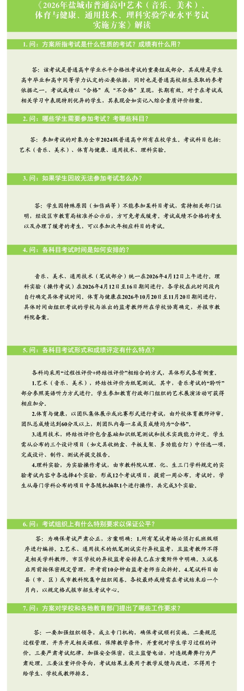 《2026年盐城市普通高中艺术(音乐、美术)、体育与健康、通用技术、理科实验学业水平考试实施方案》解读